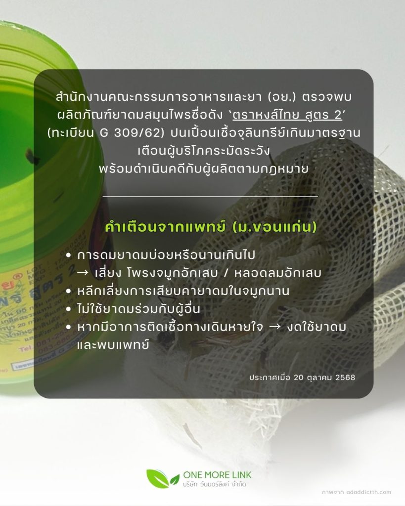 ด่วน! อย. พบเชื้อจุลินทรีย์เกินมาตรฐานใน “ยาดมสมุนไพรตราหงส์ไทย สูตร 2”