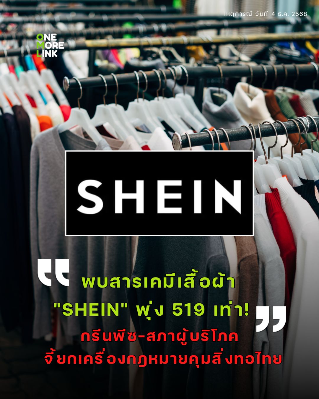 เสื้อผ้า SHEIN มีสารเคมีพุ่งสูงกว่ากฎหมายกำหนด 519 เท่า!